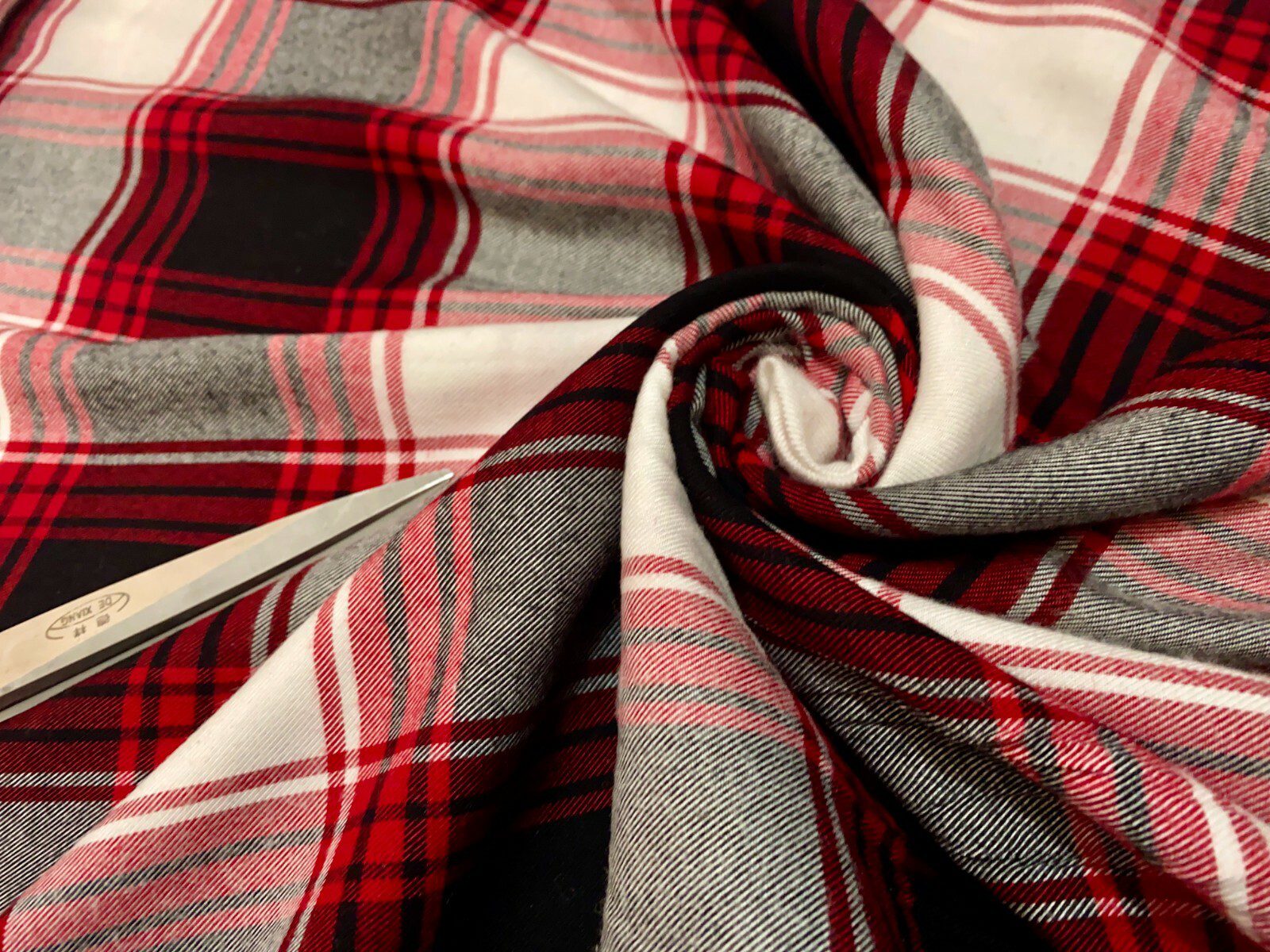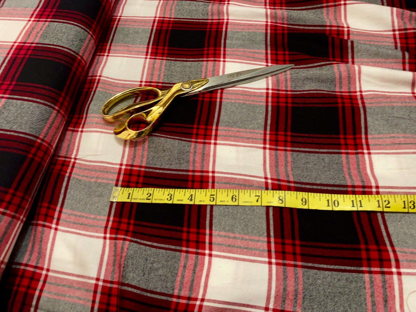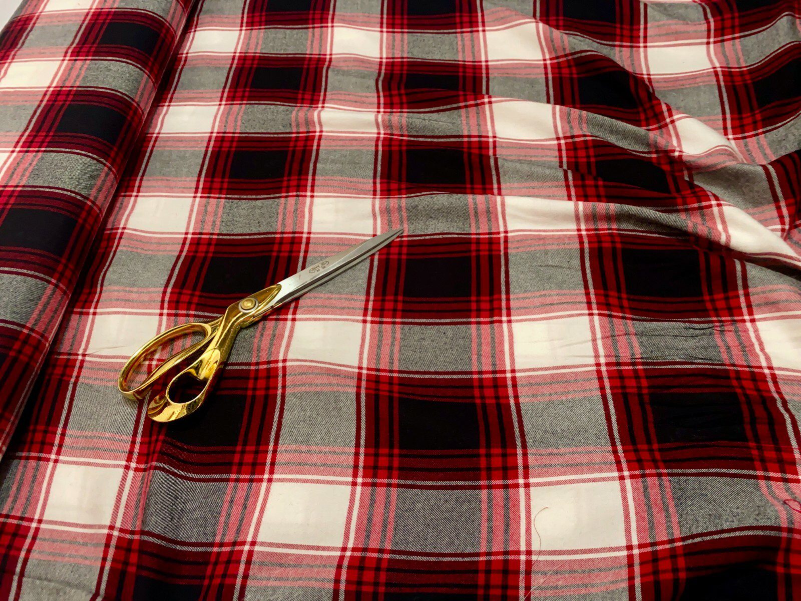 This lightweight soft viscose fabric showcases a bold and timeless large checked print in red, white, and black—perfect for statement dresses, blouses, skirts, and crafts. With its smooth texture and fluid drape, this fabric is breathable and easy to work with, offering comfort and style in equal measure. Ideal for both casual wear and chic layered pieces.