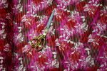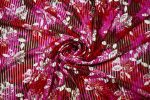This elegant stretch jersey fabric features a unique striped burnout texture layered with a bold red and pink floral print, offering both dimension and softness. With 2-way stretch and a lightweight, breathable feel, it’s ideal for dresses, abayas, headscarves, face masks, and fashion-forward crafts. The semi-sheer burnout adds a stylish touch for layering or statement garments.