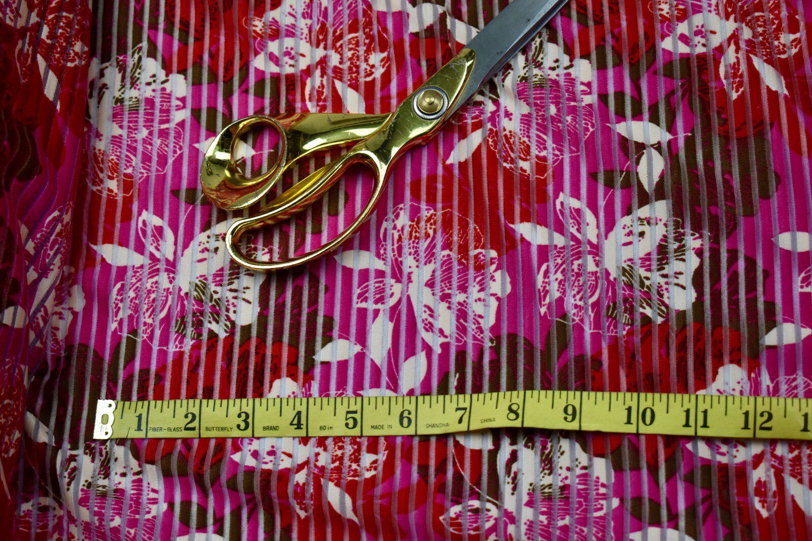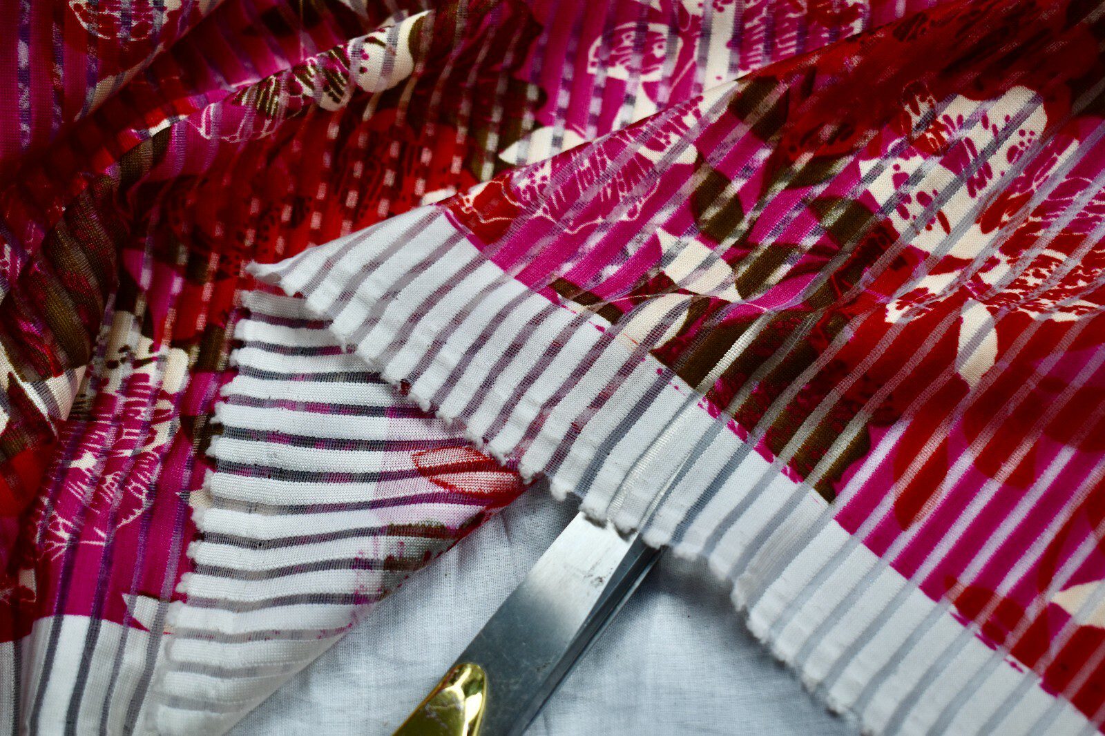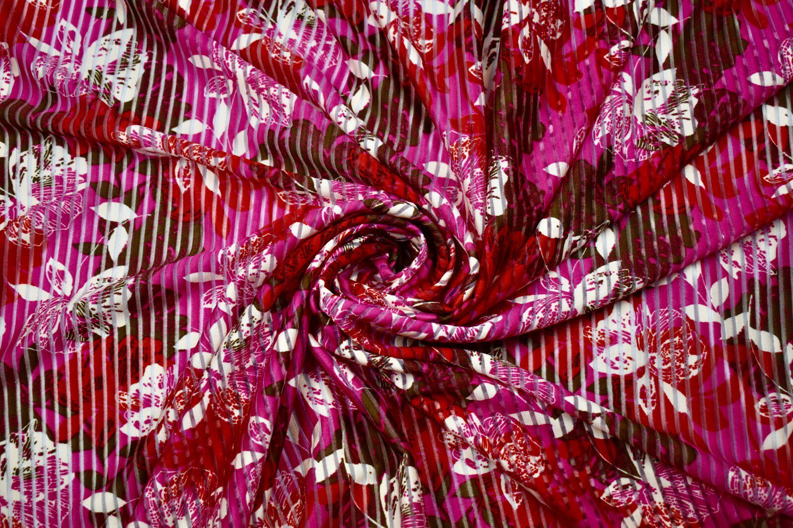Design: Striped burnout with red & pink floral overlay