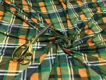 This bold and stylish stretch poly Lycra fabric features a classic plaid checked print, perfect for fashionable dresses, skirts, costumes, crafts, and standout party wear. The fabric combines the comfort of stretch with the durability of polyester, offering a smooth feel, good body, and great recovery. Ideal for both casual and occasion-ready garments.