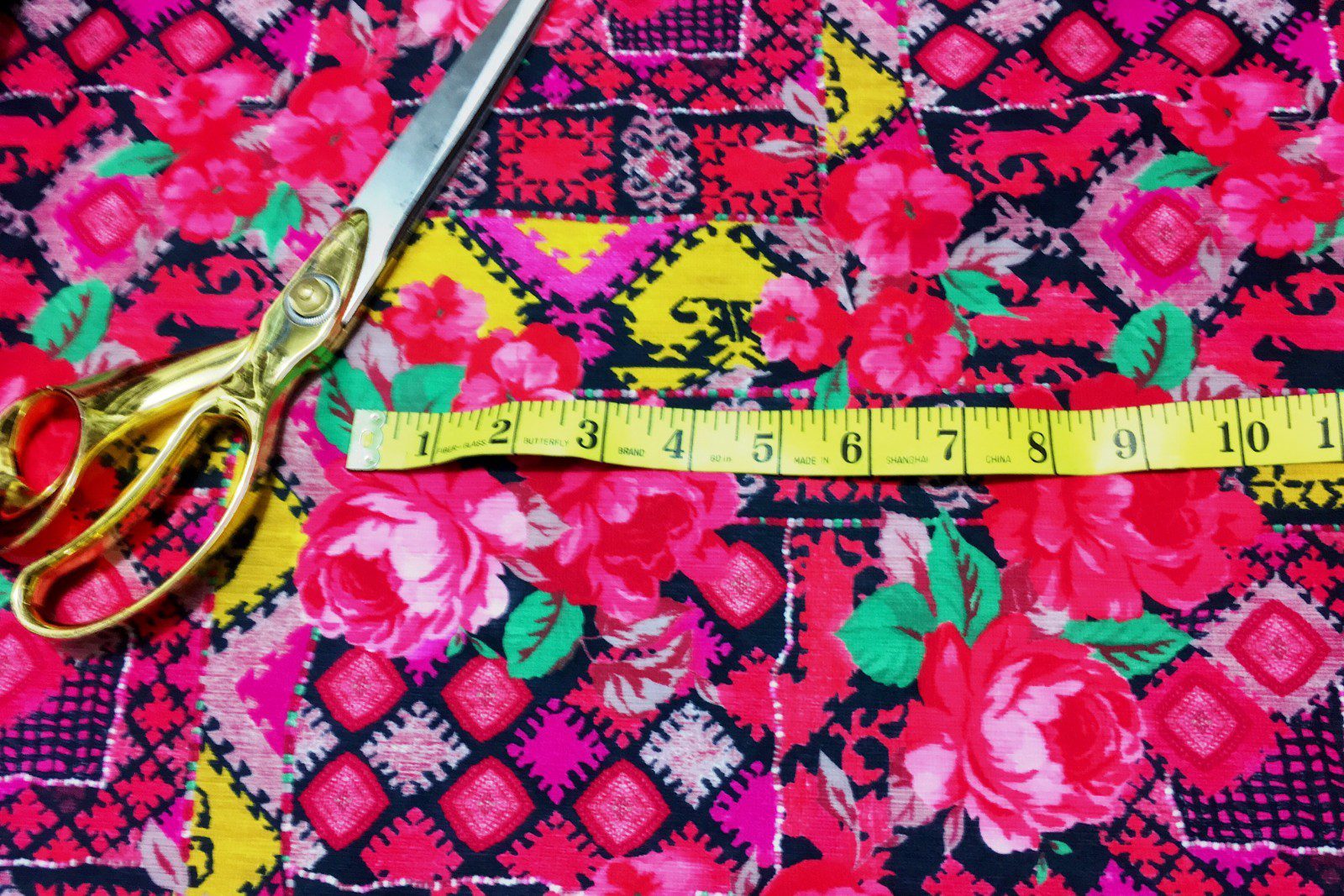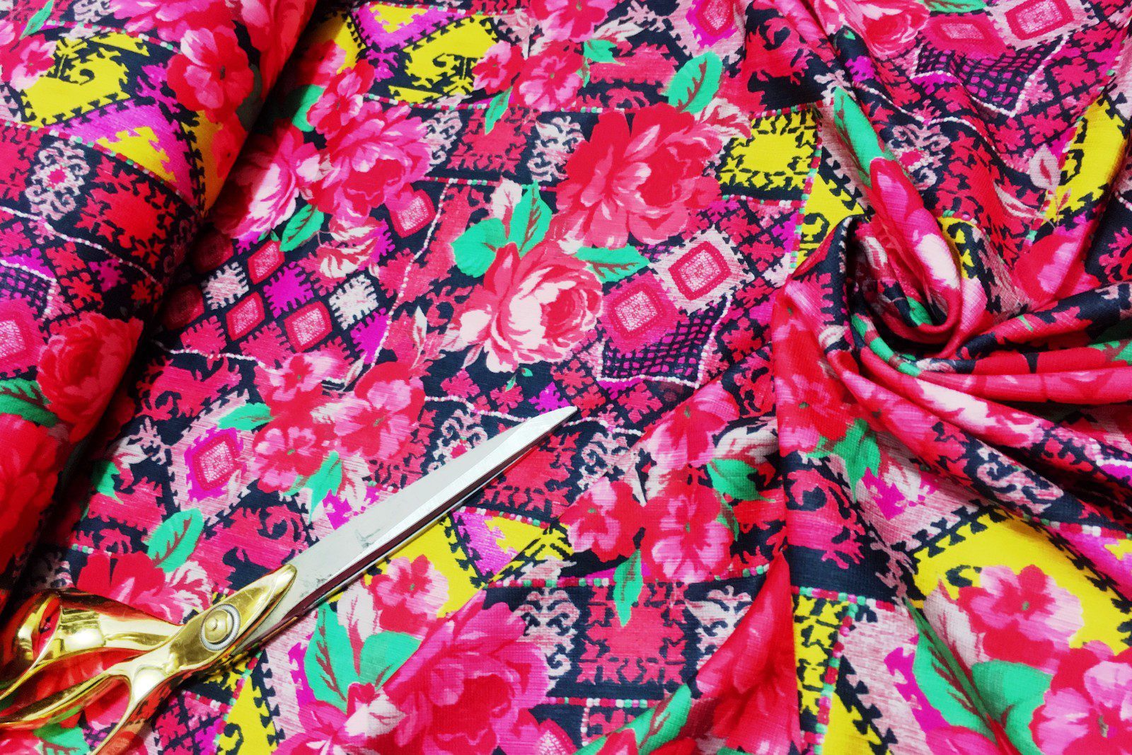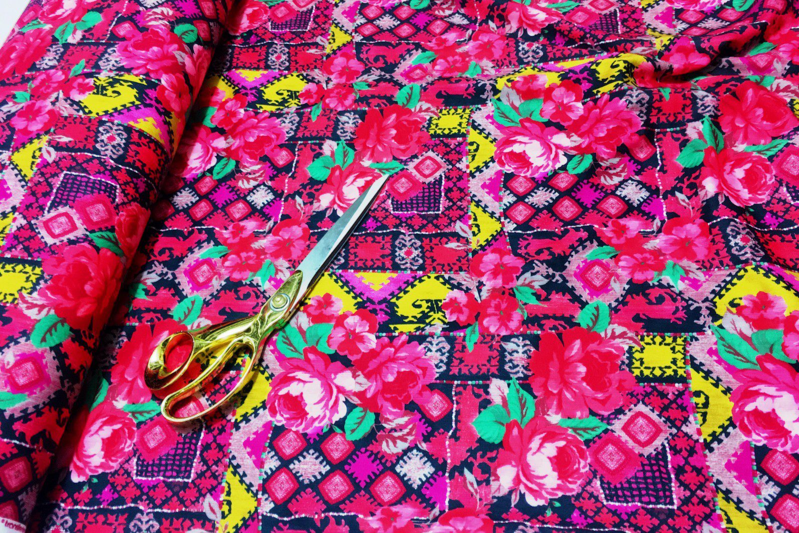 Roses and Squares Print in Stunning Pink-Yellow and Black