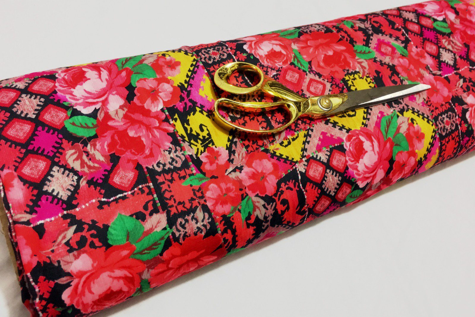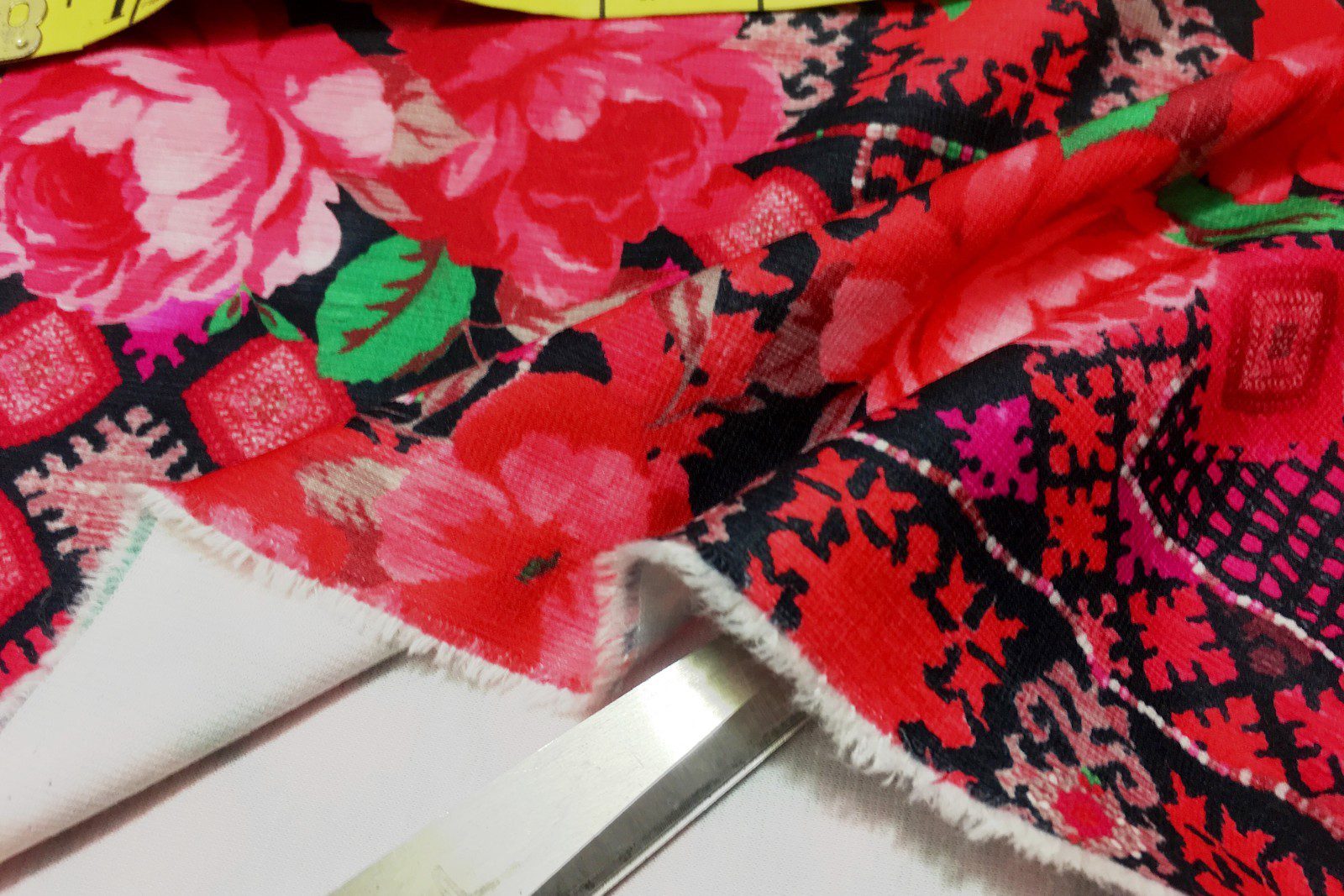 This bold and modern stretch scuba jersey fabric features a unique roses and squares print, combining floral elegance with graphic structure. With a soft, smooth surface and moderate thickness, it offers excellent stretch and recovery, making it perfect for bodycon dresses, skirts, tops, and structured craft projects. The fabric holds shape beautifully while still providing comfort and flexibility.