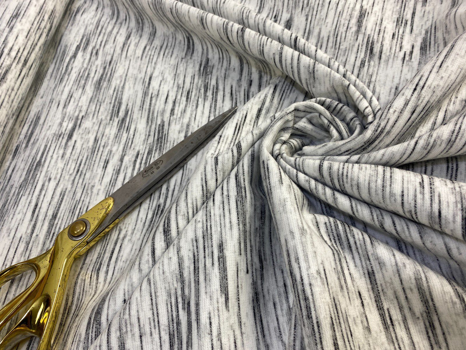 Stretch Viscose Double Knit Jersey Fabric – White/Grey Streaks – Dress & Craft Use