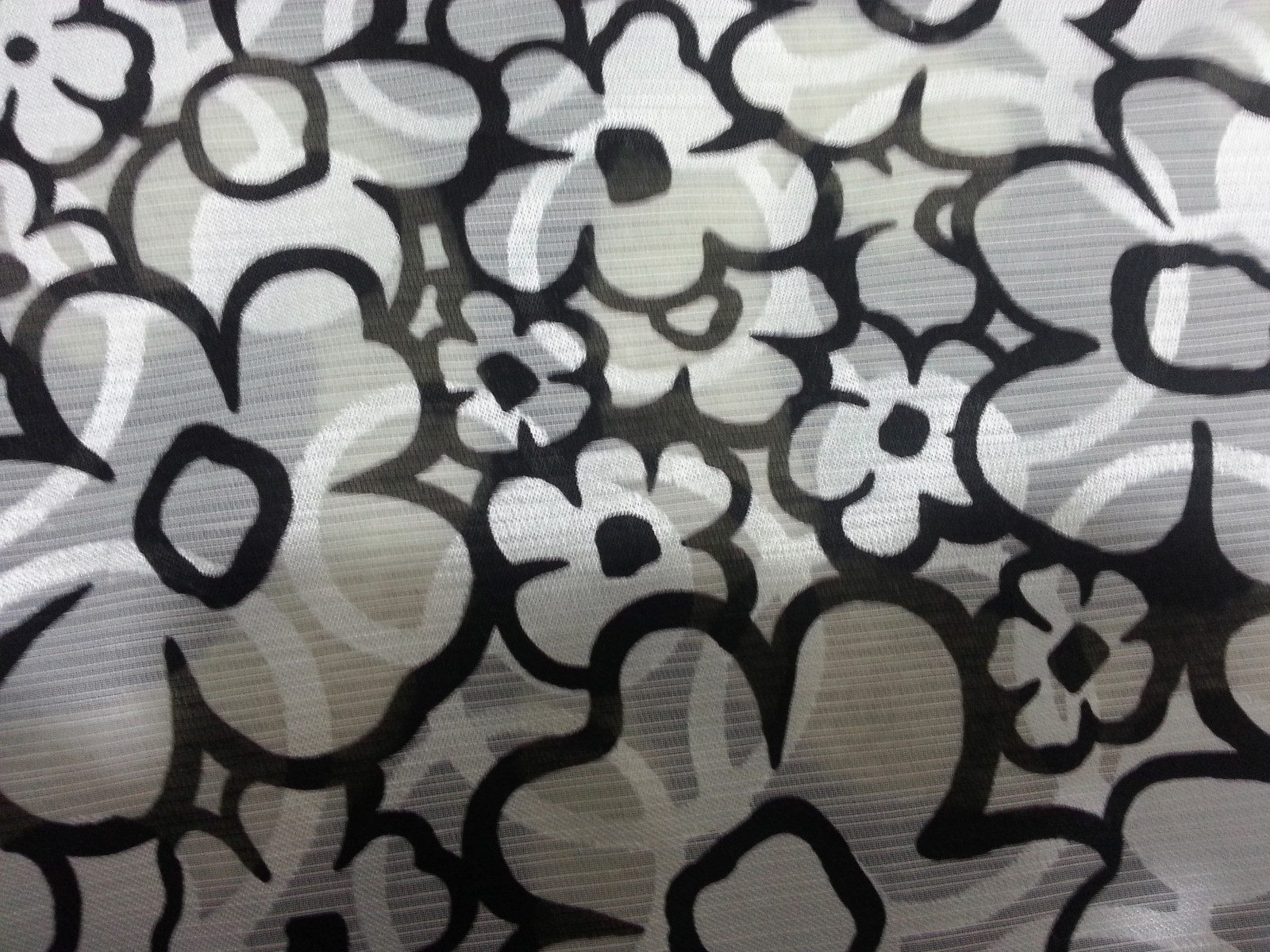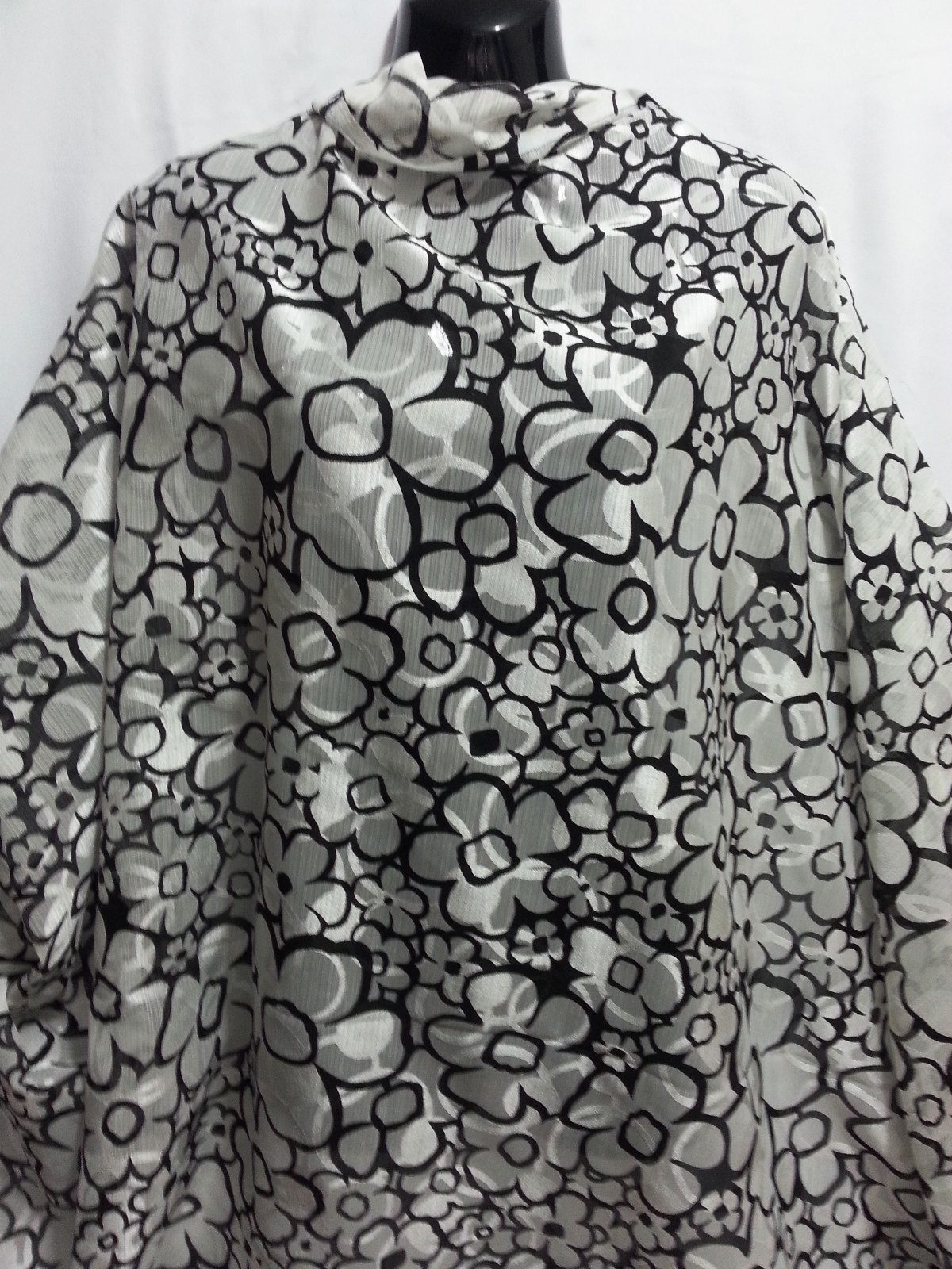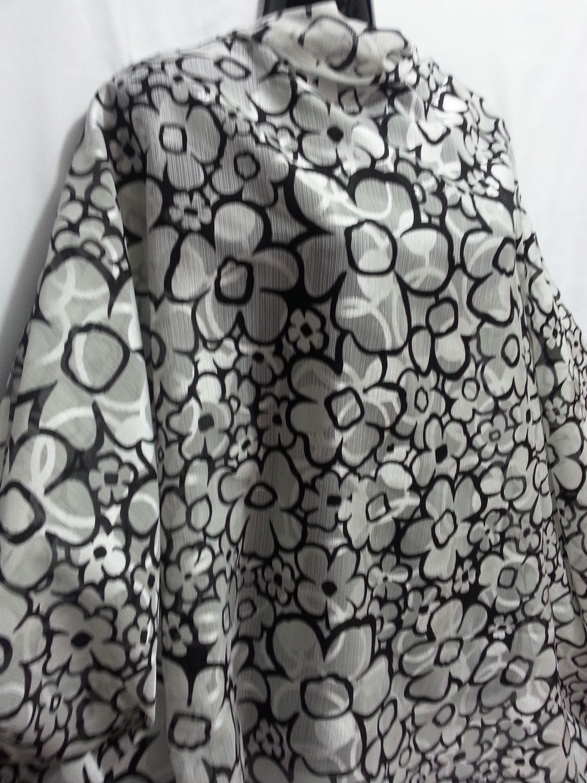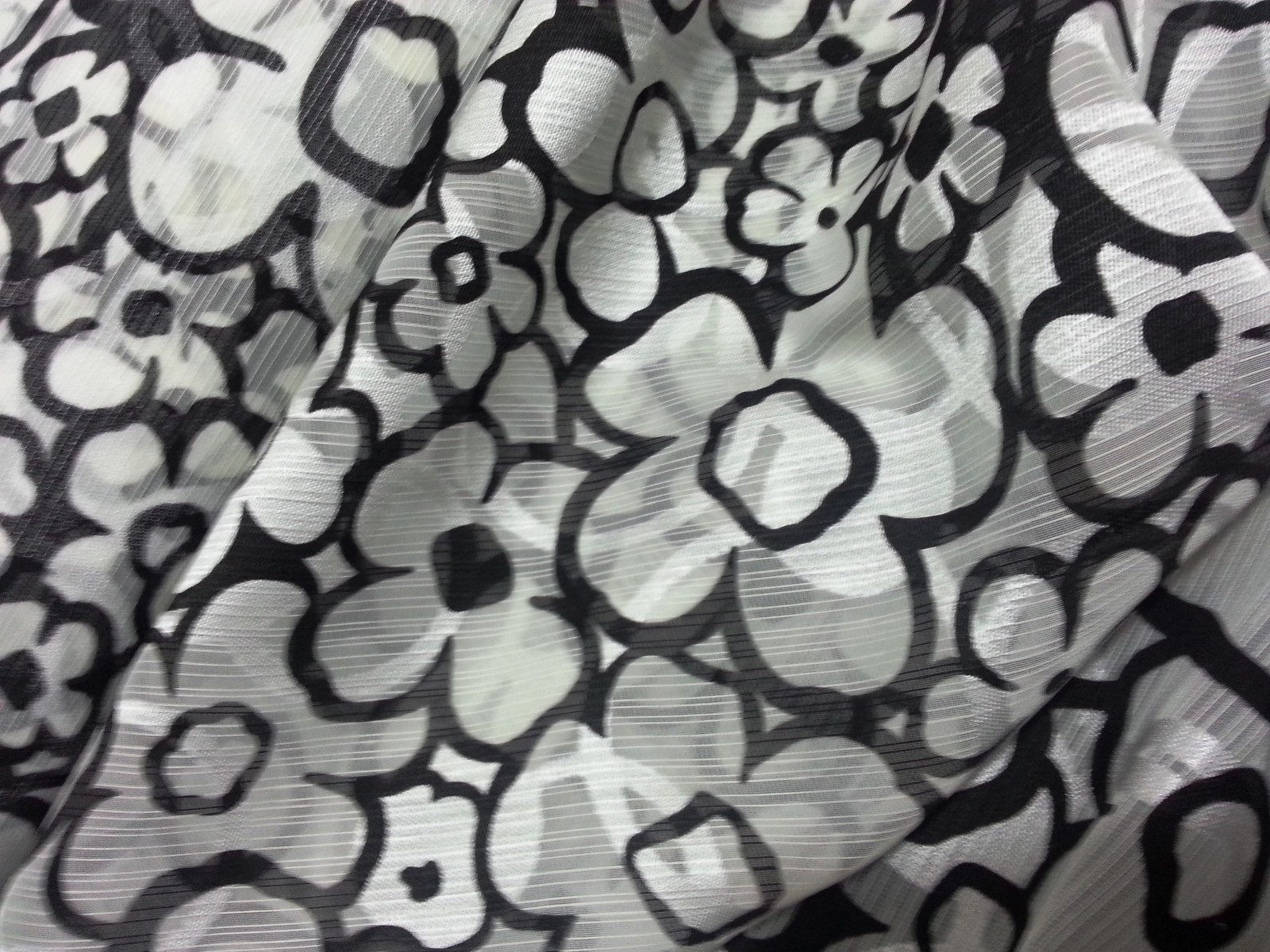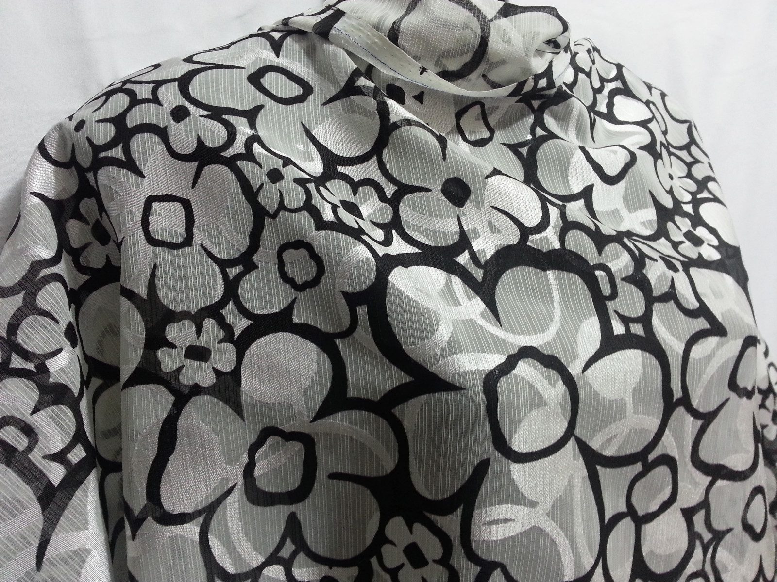 Features: Rich texture, semi-sheer base, elegant floral print, designer quality
