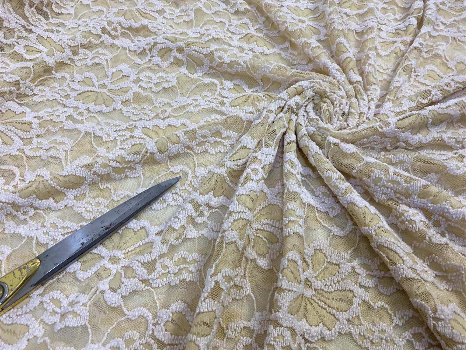 Craft your next masterpiece with our top-quality beige crochet net lace, ideal for a variety of creative projects. Adorned with a delicate floral pattern, this medium-weight fabric features an intricate embroidered design that adds an exquisite touch to any application. Whether you’re crafting apparel, dance costumes, or adding a touch of elegance to your home décor, this versatile lace provides a sophisticated finish.