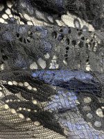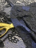 This top quality crochet net lace fabric features a striking black and blue floral design, perfect for creating elegant, textured garments and bridal or craft projects. With its openwork structure and soft drape, this fabric is ideal for overlays, evening dresses, bridalwear, shawls, and statement accessories. A sophisticated lace that adds visual depth and tactile beauty to any design.