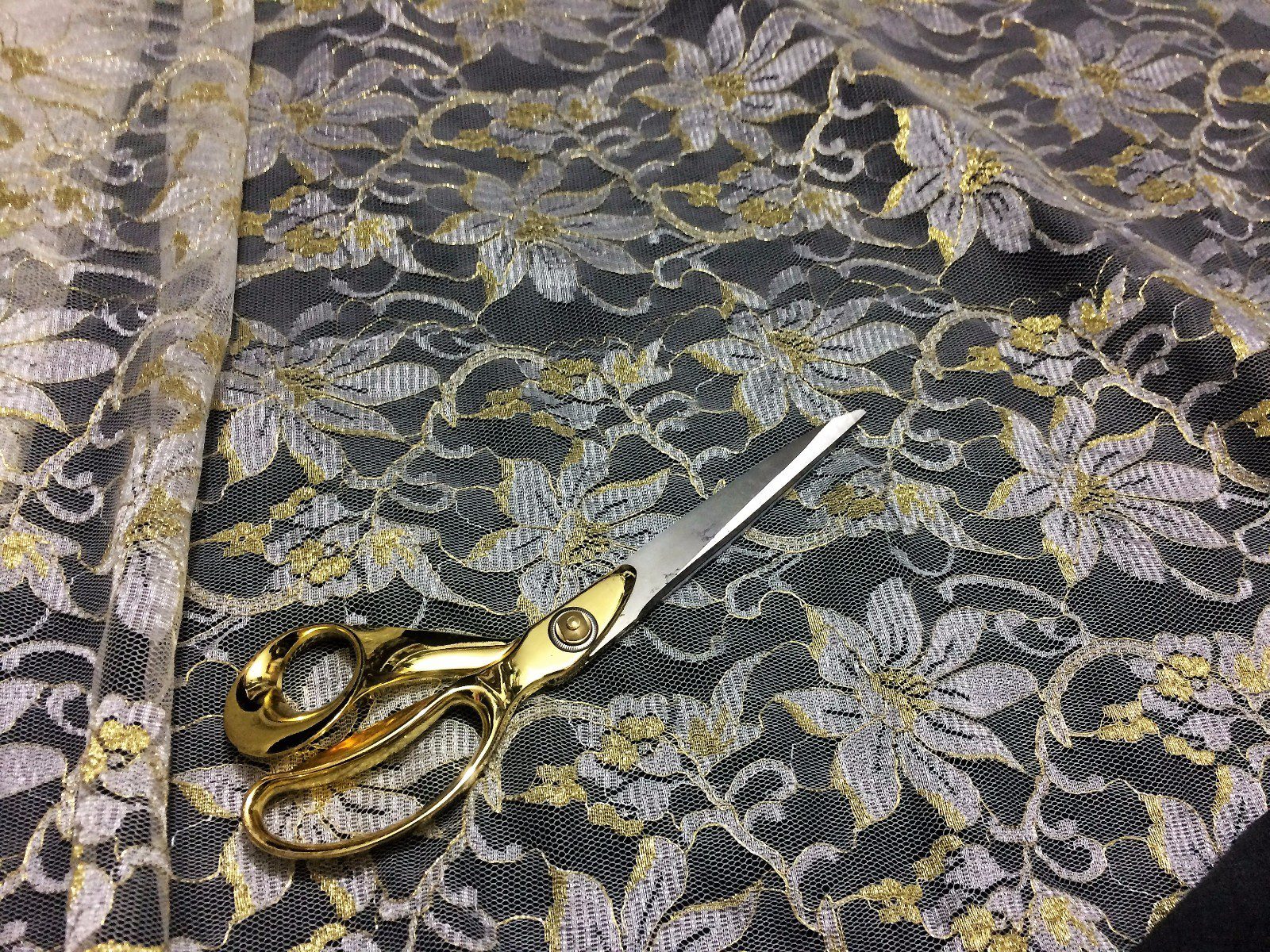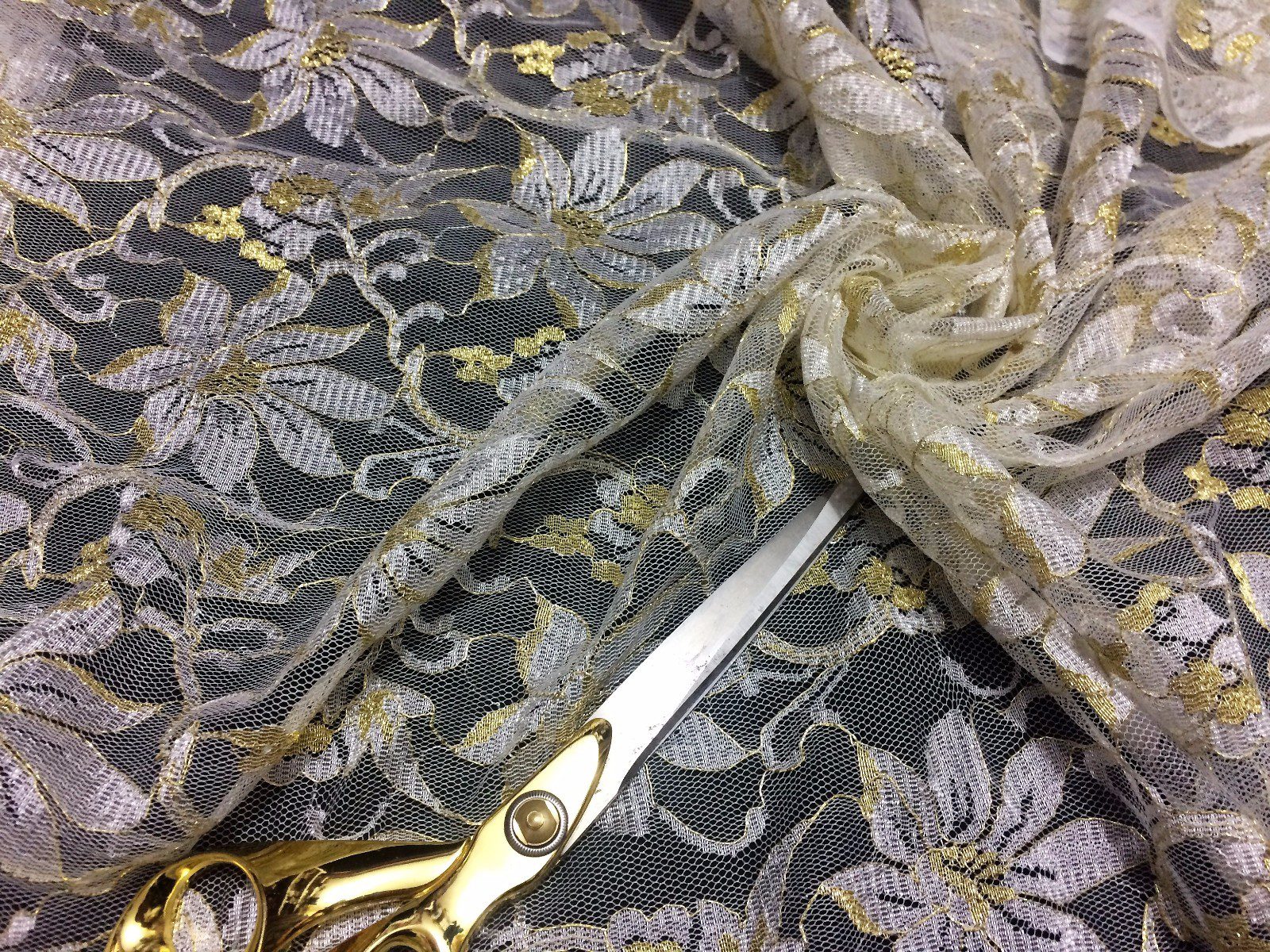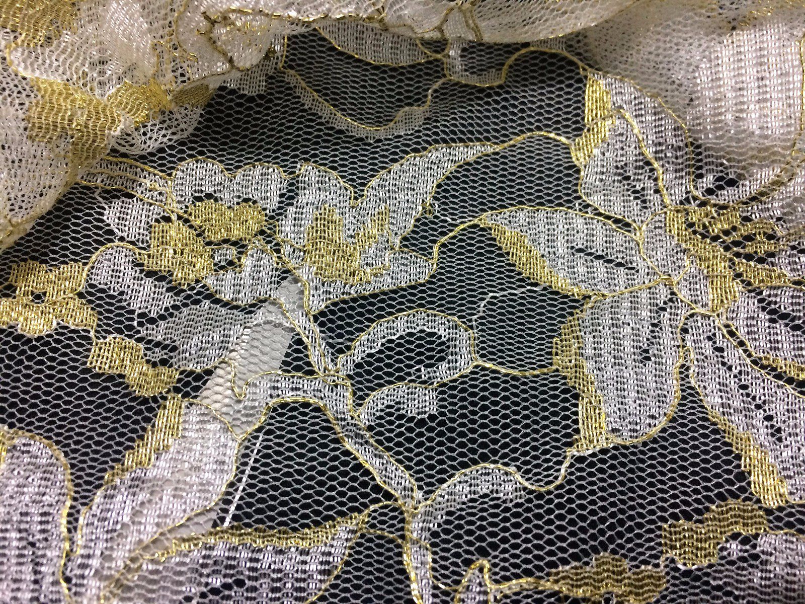 Design: Floral crochet lace in ivory with metallic gold detailing
