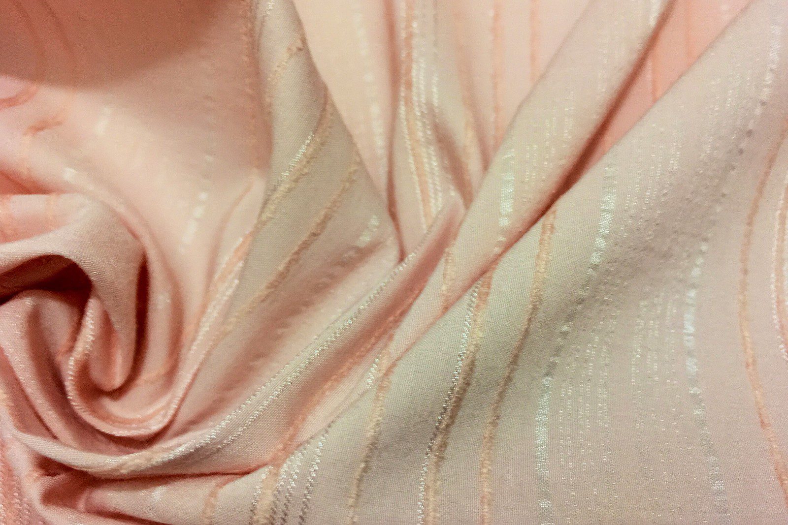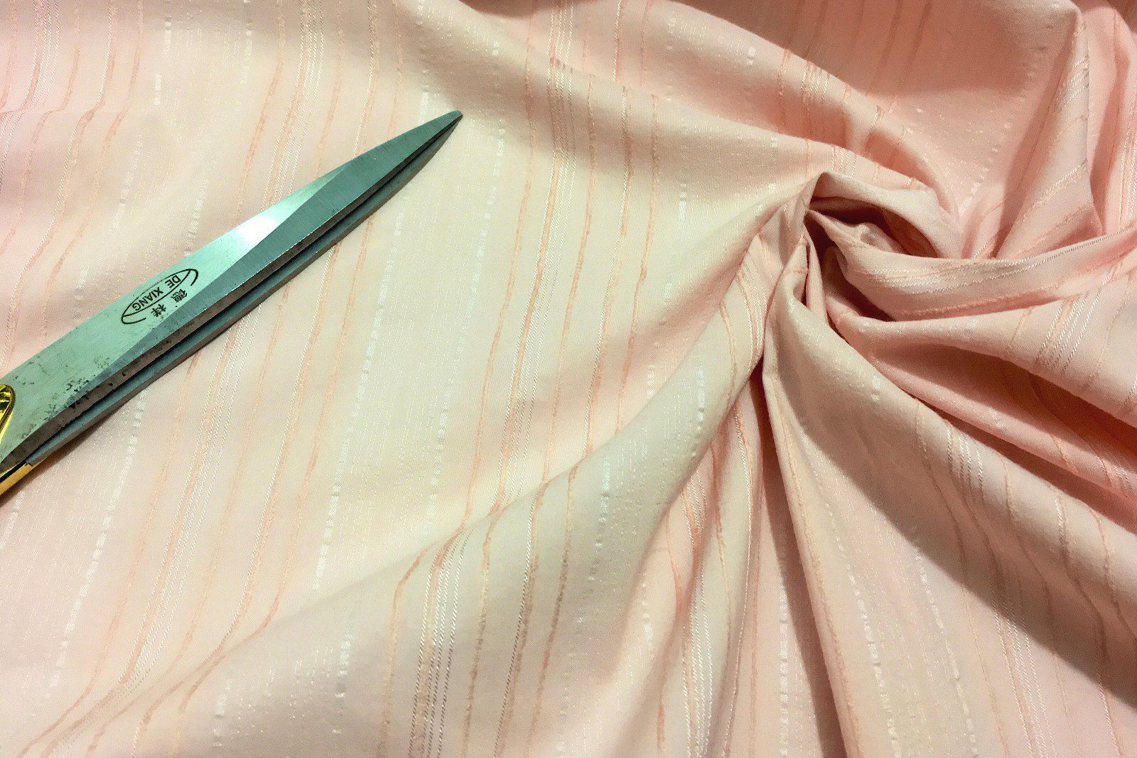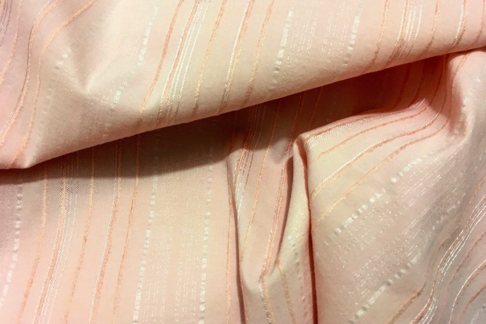 This top quality pink polycotton stretch fabric with embroidered stripes features elegant self-embroidered stripe detailing and a comfortable one-way stretch, combining soft structure with subtle texture. The blend of polyester and cotton ensures breathability and ease of care, making it perfect for dresses, tops, skirts, blouses, and stylish craft projects. The delicate striped embroidery adds a touch of sophistication while keeping the fabric versatile for everyday or semi-formal wear.