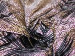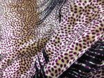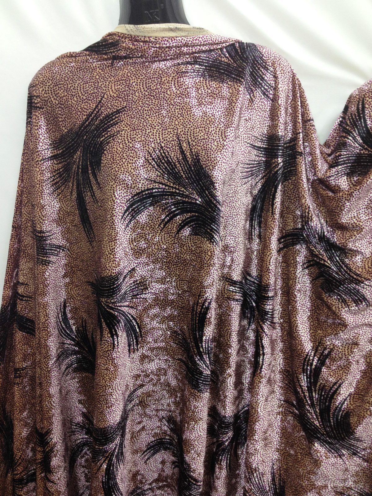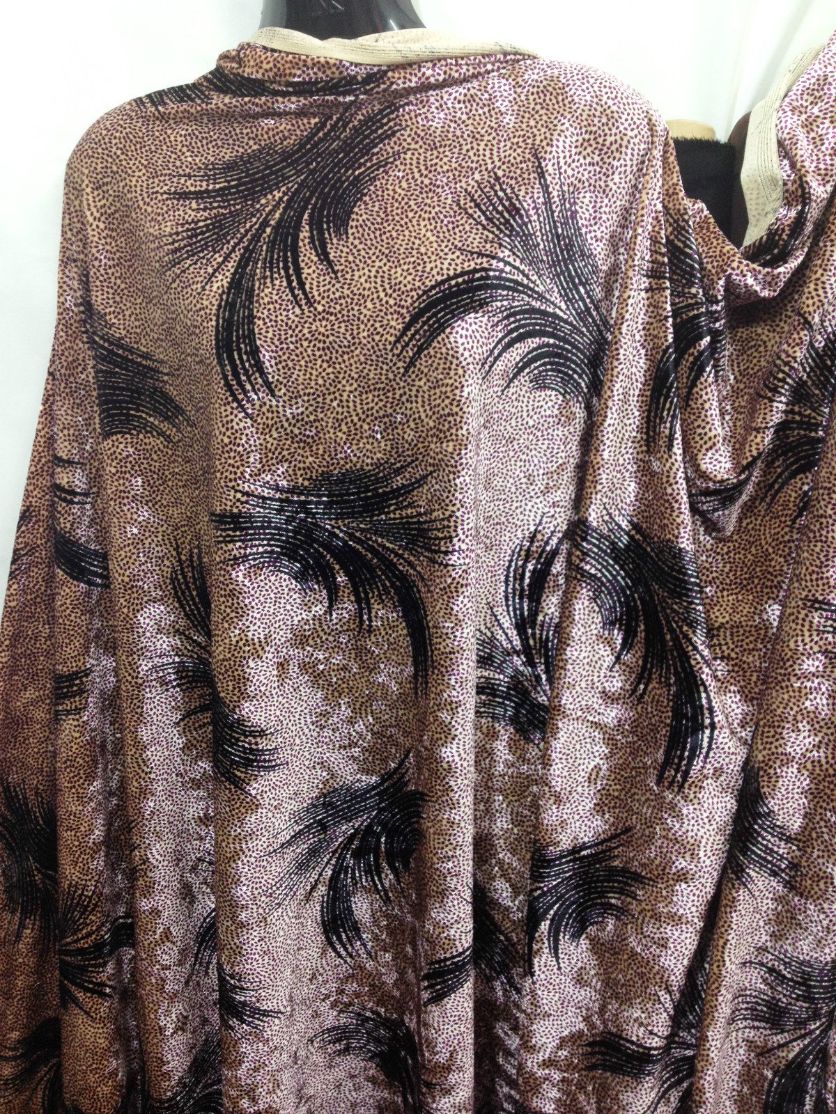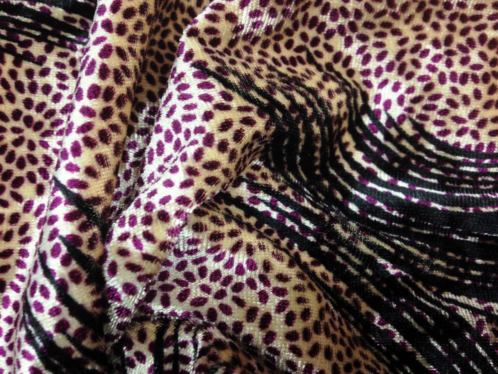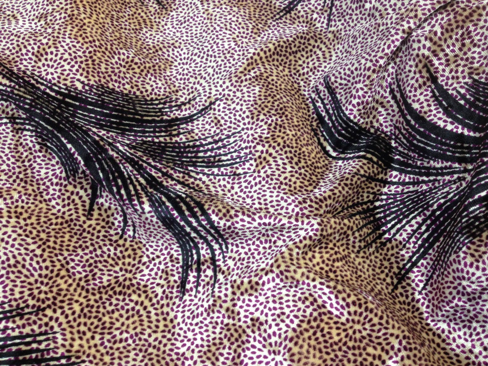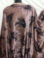 This luxurious spandex velvet fabric features a rich light gold base with an eye-catching purple print, offering a soft pile, beautiful sheen, and comfortable stretch. Ideal for dresses, costumes, eveningwear, and creative crafts, it drapes beautifully while retaining structure. The added spandex gives it flexibility, making it perfect for fitted garments and elegant statement pieces.