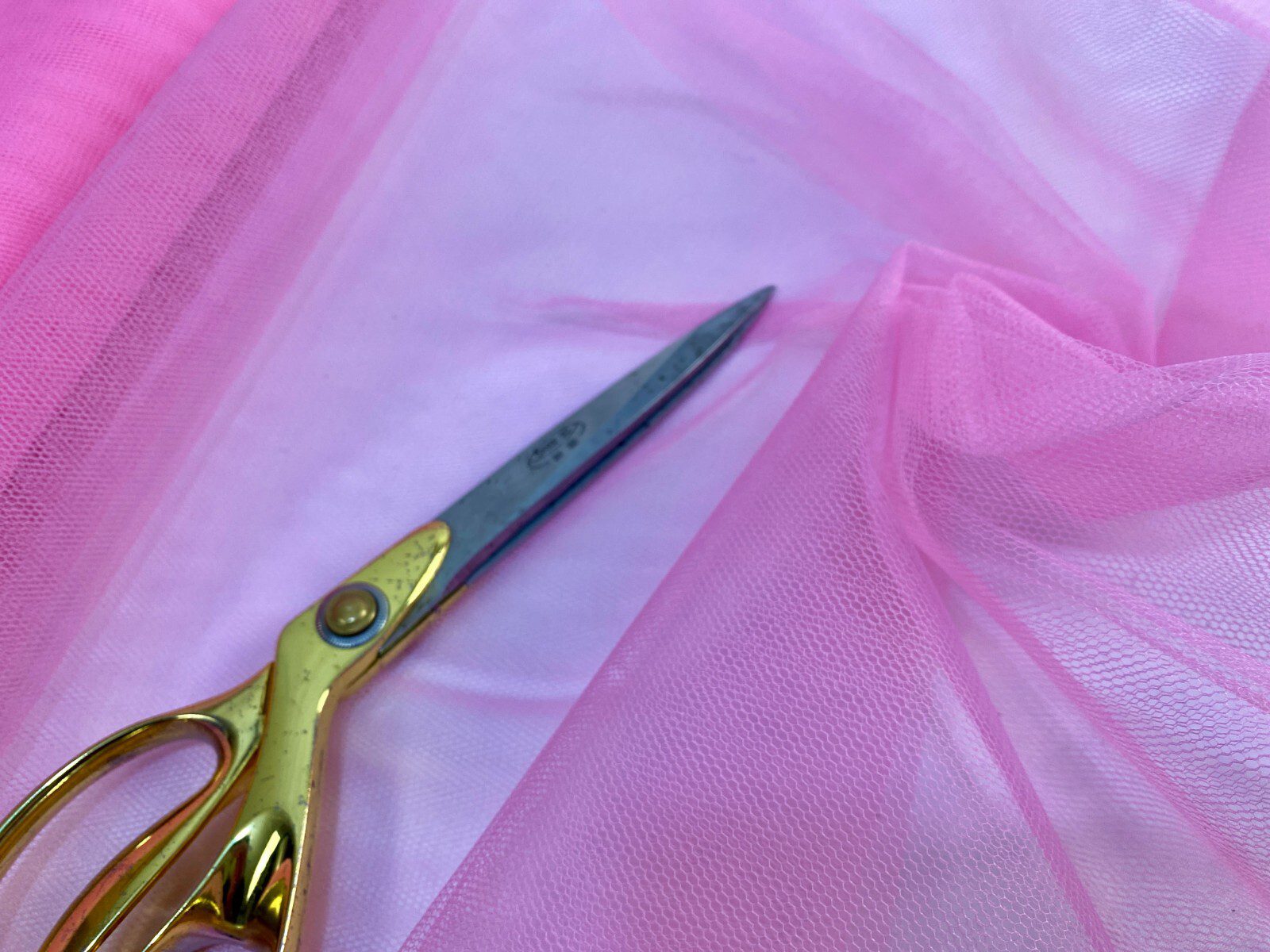 This fabric is soft, slightly stiff sheer, and lightweight with a fine mesh texture. It gathers and drapes beautifully, making it a go-to for designers, crafters, and dressmakers alike. Perfect for layering, shaping, or adding whimsical detail to your designs.