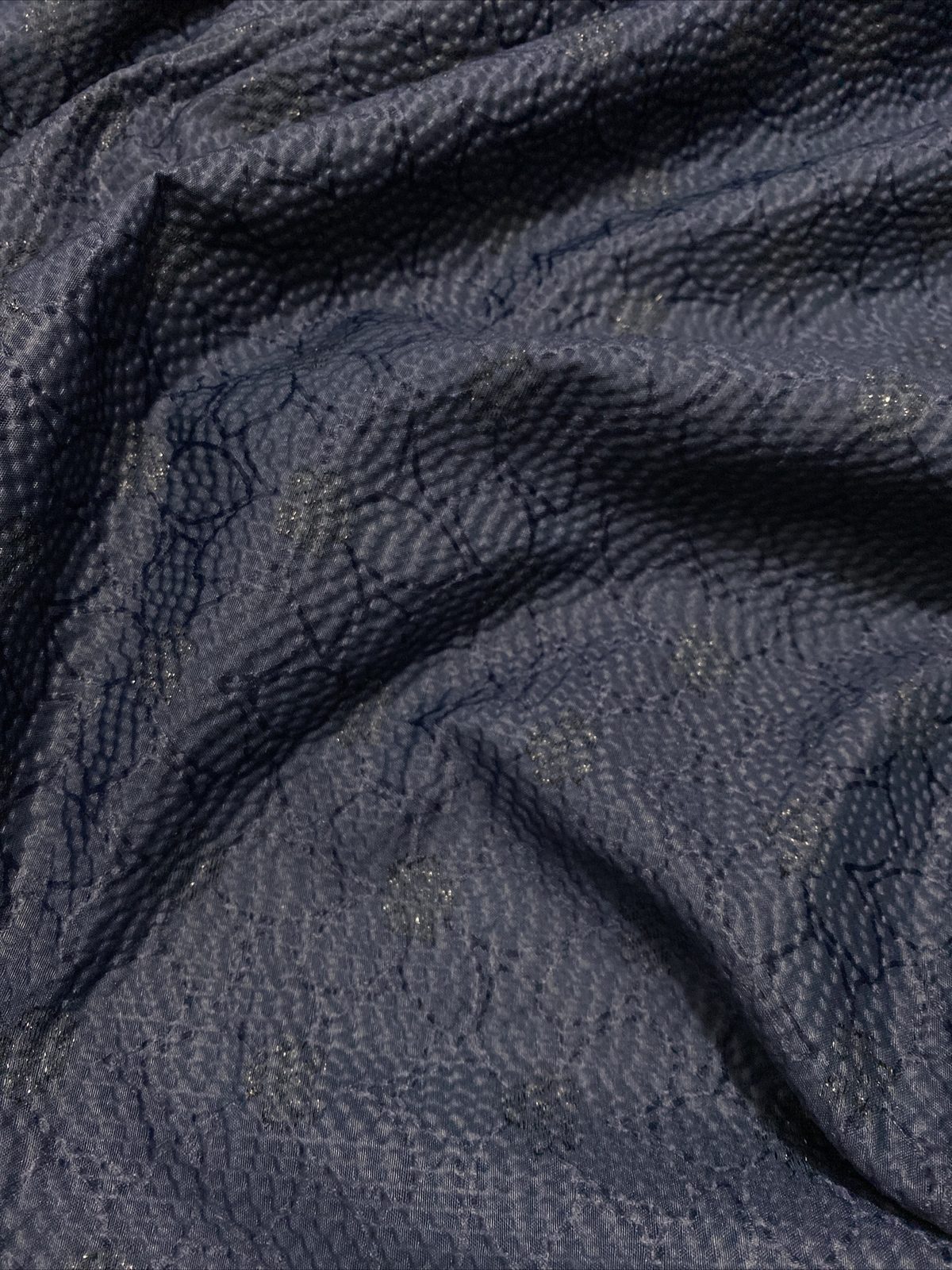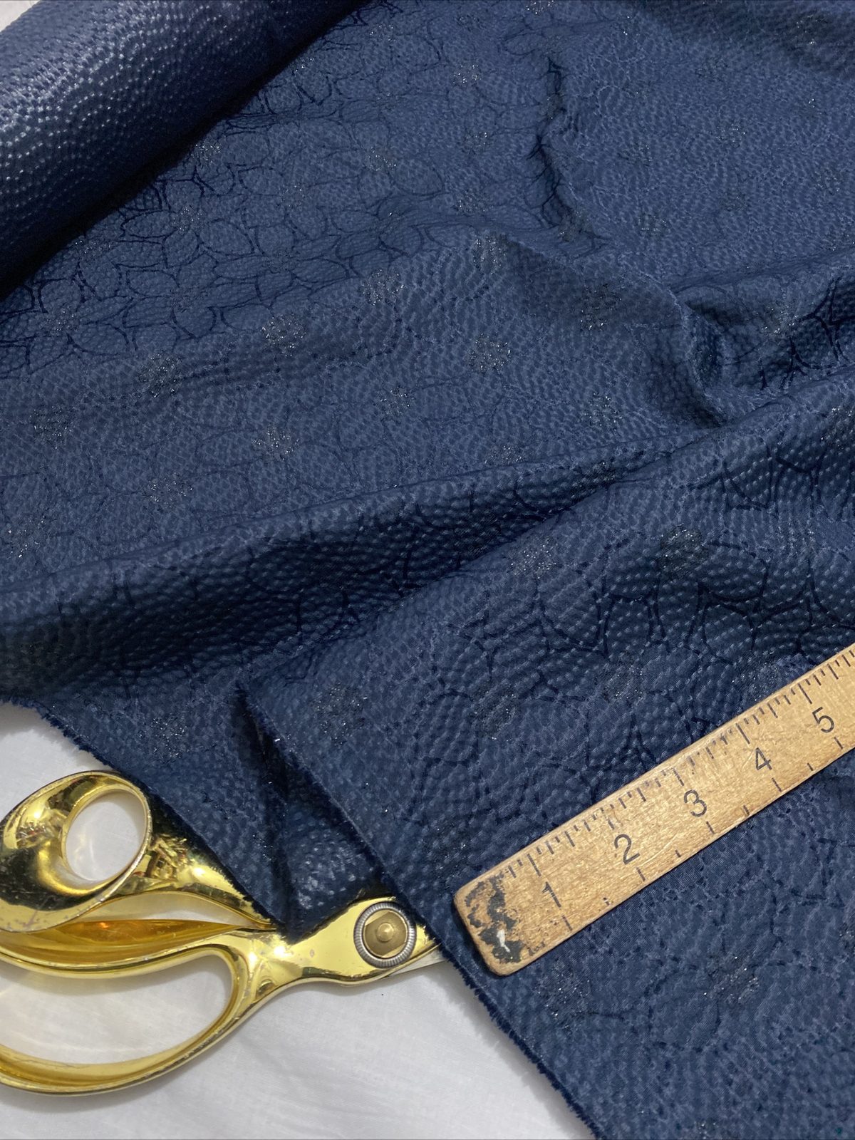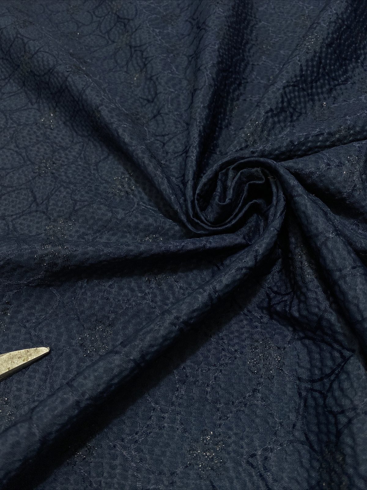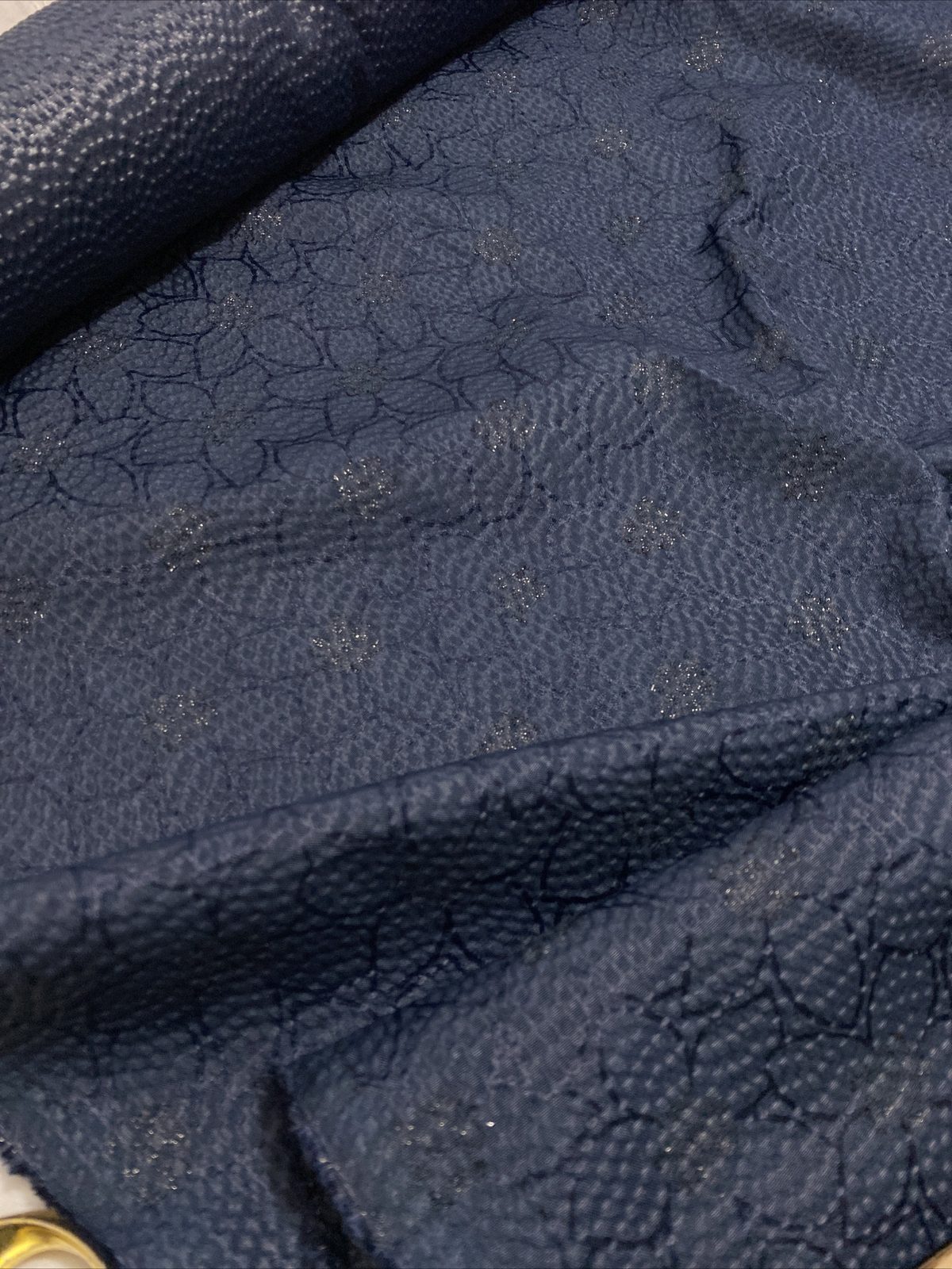 This medium-weight polyester crepe fabric features a rich dark navy background with a beautiful floral print, perfect for both decorative and practical projects. With its textured finish and soft drape, it’s ideal for cushions, table runners, crafts, and even structured garments like skirts or jackets. Durable and easy to sew, it brings timeless elegance and function together.